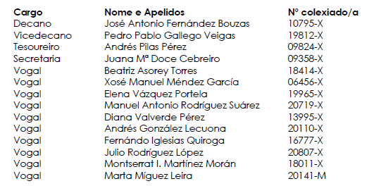 Que nas eleccións a Xunta de Goberno do COBGA convocadas o día 15 de outubro de 2025, resultou elexida a seguinte candidatura